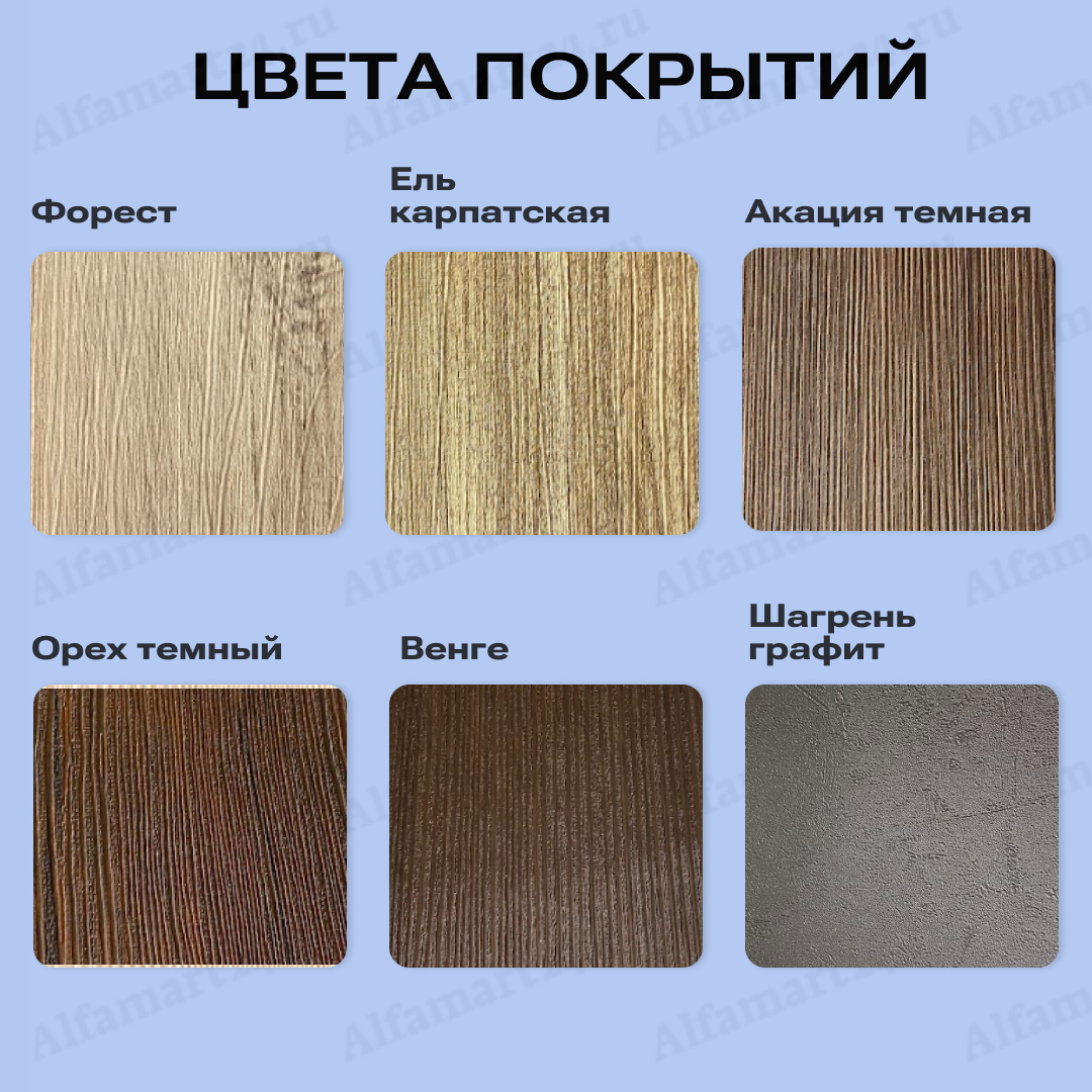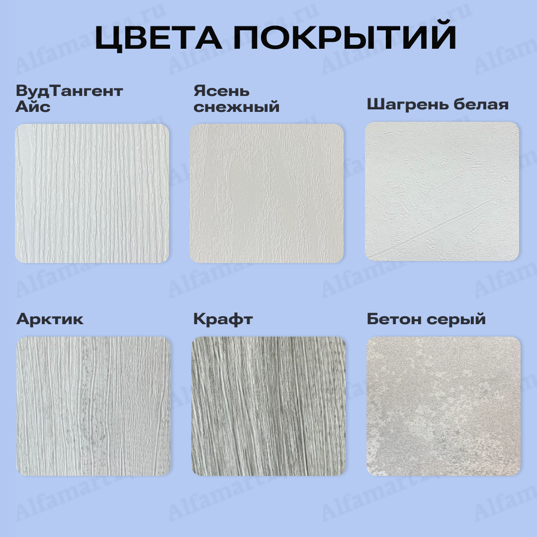 | Возможные цвета | Акация светлая, Бетон бежевый, Дуб молочный, Ель карпатская, Орех темный, Шагрень белая, Шагрень графит | |