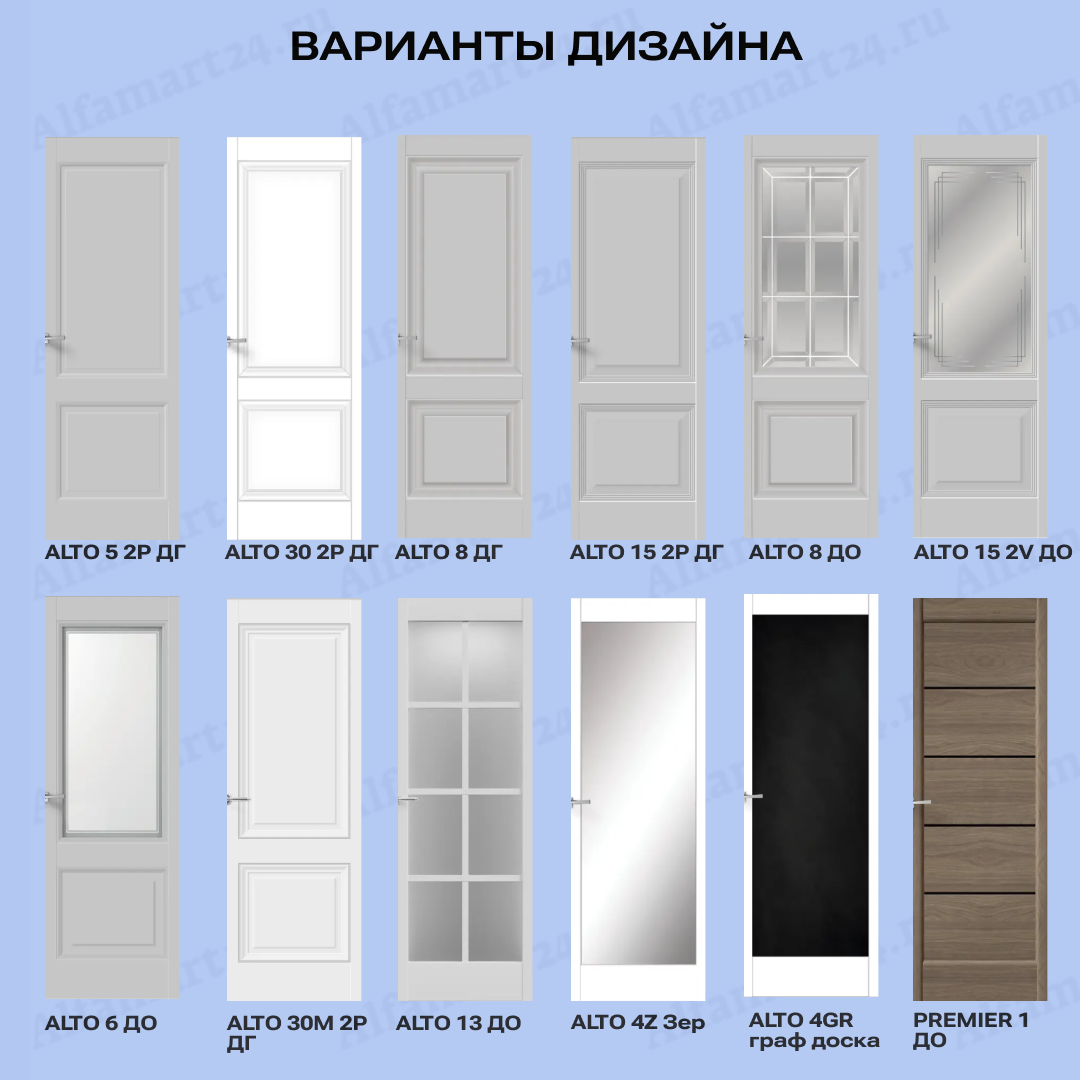 Двери возможно изготовить в большом разнообразии дизайнов. Популярными дизайнами являются двери с большим количеством стекла, либо со стеклом в половину или стеклом решеткой. Стоит обратит внимание на варианты дверей без стекла и с молдингом. Любой из перечисленных вариантов можно подобрать, посчитать и согласовать с нашими менежерами.